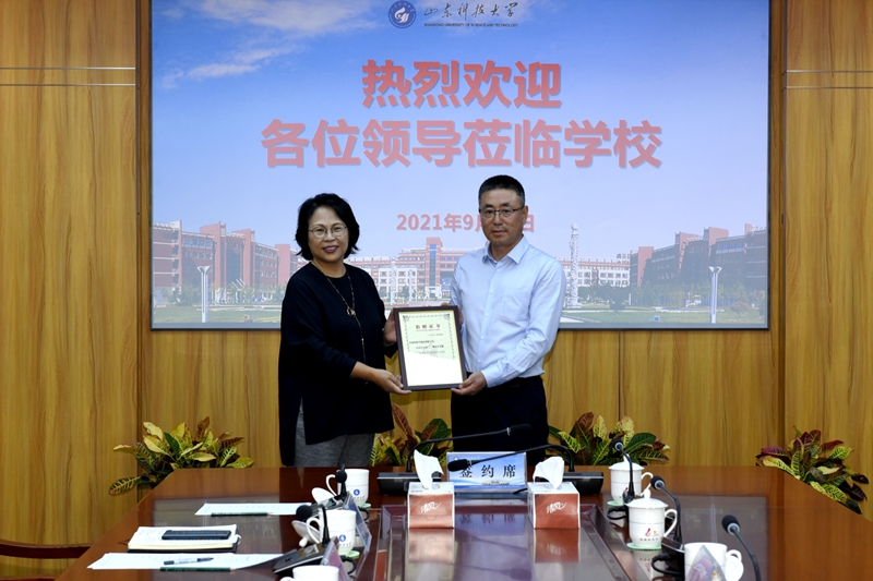 签约仪式上,青岛中加特电气股份有限公司出资100万元设立奖学金,支持公司教育事业发展。李玉霞代表公司接受捐赠,并向丁国利回赠了致谢牌。公司合作发展处处长王晓东和青岛中加特电气股份有限公司董事郑龙兴代表双方签署合作协议。